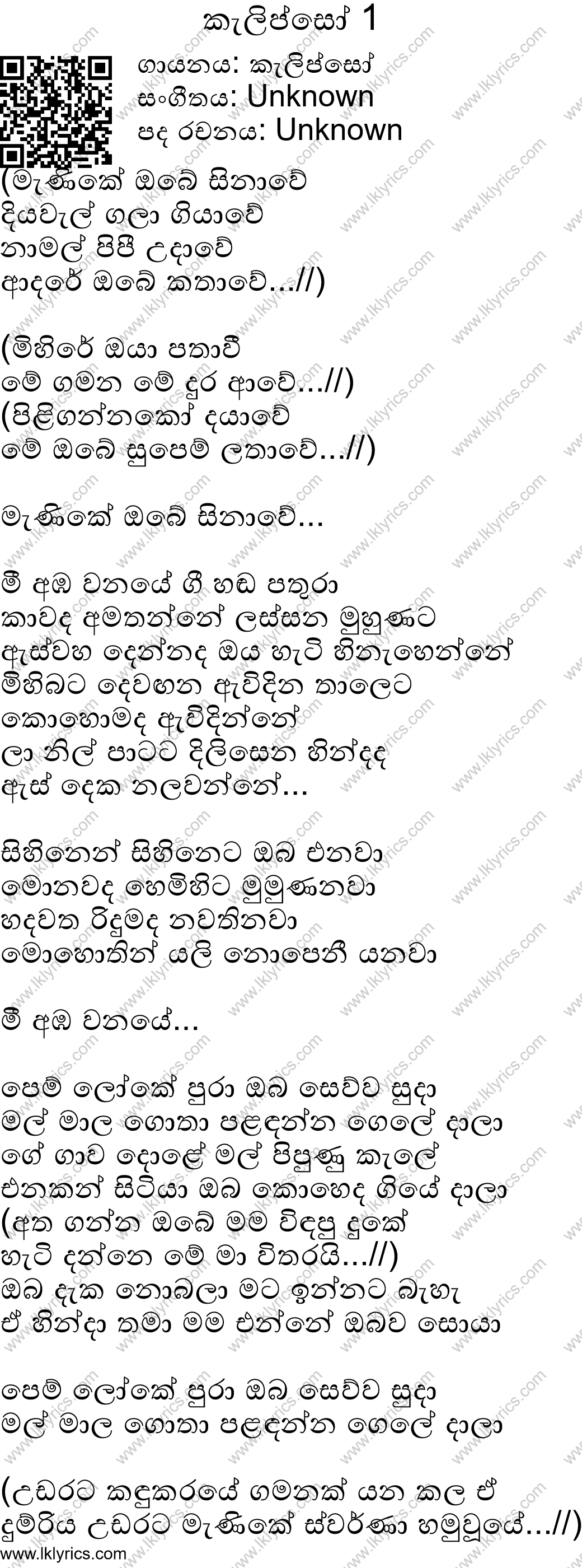 Our records indicate that Calypso NonStop ( Part 1 ) is sung by Calypso, . The lyricist of this song is currently unknown. The composer of this song is currently unknown. Calypso NonStop ( Part 1 )'s first published year is unknown. We would like to invite you to submit it if you are aware. You can listen to this song by visiting the following youtube link: https://www.youtube.com/watch?v=czfRDPVZNd4. Lk Lyrics is largely a community maintained application. Please feel free to use our android app or web site to submit corrections to this song.